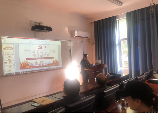 10月25日下午,货币金融系党支部在红楼三号楼210会议室召开专题党课学习会,深入学习习近平总书记在党的二十大所作报告《高举中国特色社会主义伟大旗帜 为全面建设社会主义现代化国家而团结奋斗》。