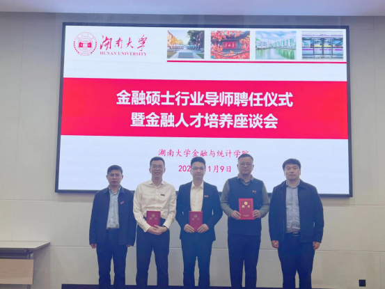 11月9日下午,球王会金融硕士行业导师聘任仪式暨金融人才培养座谈会在公司报告厅举行。左健、彭术乔、周燕、邓嘉宜、王俊海、陈海若等六名行业导师代表,经理王修华、公司党委书记黄红立、副经理吴志明,金融硕士专业负责人马勇,货币金融系、应用金融系、金融工程系导师代表,以及2022级金融硕士员工代表参会。会议由副经理吴志明主持。