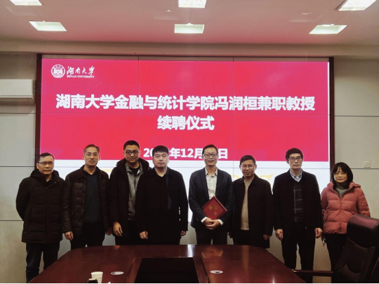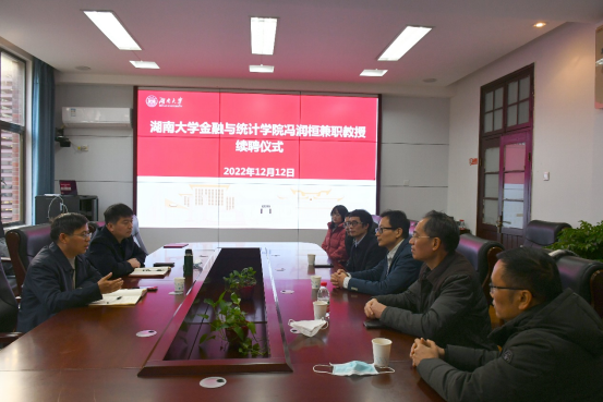 12月12日下午,球王会盛世景特聘教授冯润桓(美国伊利诺伊大学香槟分校终身教授兼精算项目主任)聘任仪式,在金统公司红楼2号楼226举行。