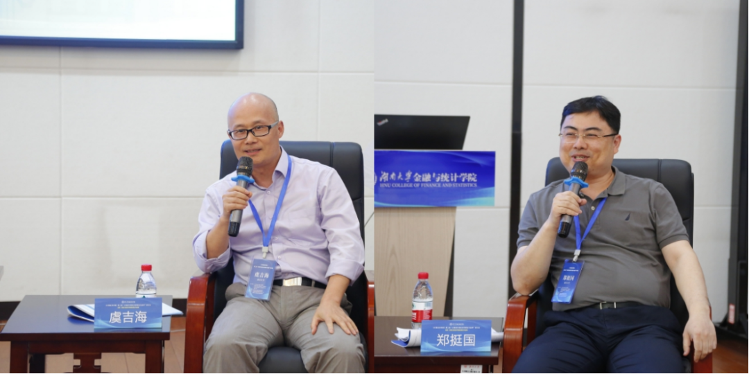 中国科公司大学洪永淼教授(左一) 中央财经大学姜富伟教授(右一)