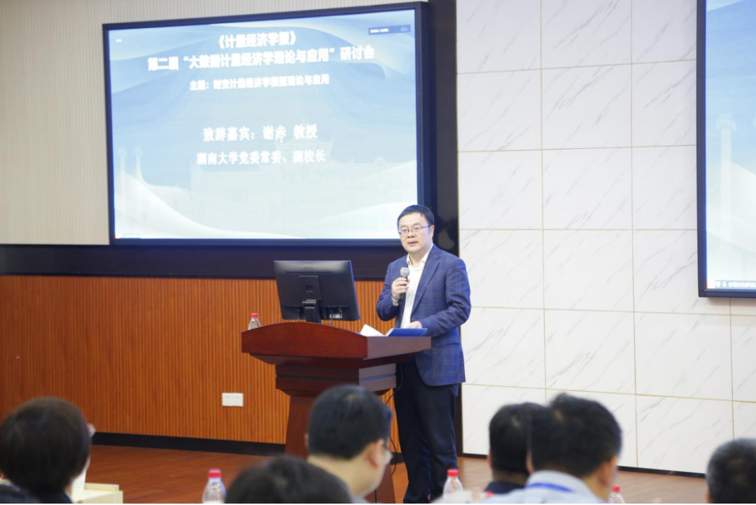5月13-14日,第二届“大数据计量经济学理论与应用:时变计量经济学模型理论与应用” 研讨会在球王会体育官网财院校区球王会顺利召开。副董事长谢赤教授出席会议并致辞。
